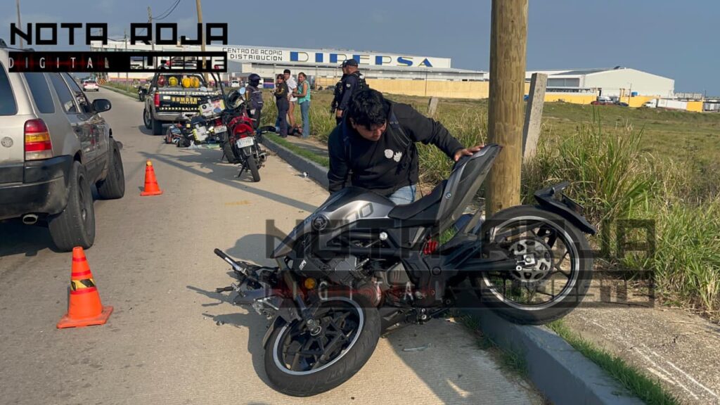 De acuerdo con los primeros reportes, la motocicleta —de aproximadamente 400 centímetros cúbicos— circulaba a exceso de velocidad cuando el conductor perdió el control de la unidad, lo que provocó que se impactaran de frente contra un poste a un costado de la vía.